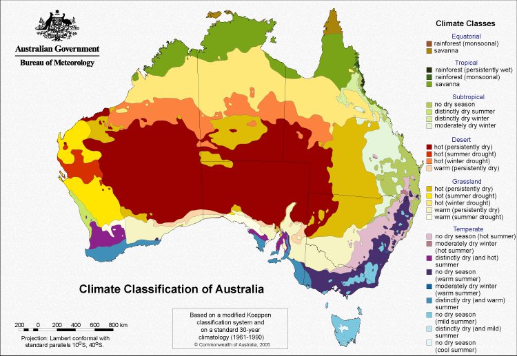 Tout ce qu’il faut savoir sur l’Australie et sa météo, ses climats et ses saisons, sur le site du gouvernement australien : bom.gov.au - Bureau Of Meteorology .... , d'où proviennent toutes ces cartes.